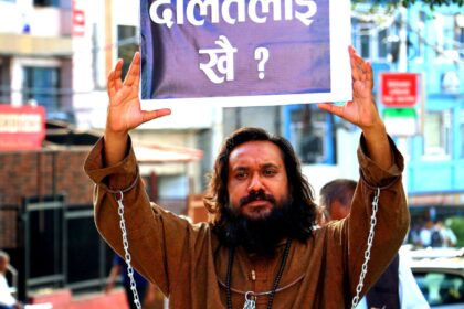 काठमाडौं, सिराहामा धर्मको आडमा भएको दलितमाथिको विभेदको विरुद्धमा दलितका लागि दलित अभियान, नेपालले काठमाडौंमा वृहत प्रदर्शन गरेको छ । अभियानका संयोजक खगेन्द्र सुनारको नेतृत्वमा भएको अर्धनग्न साँङ्लो आन...